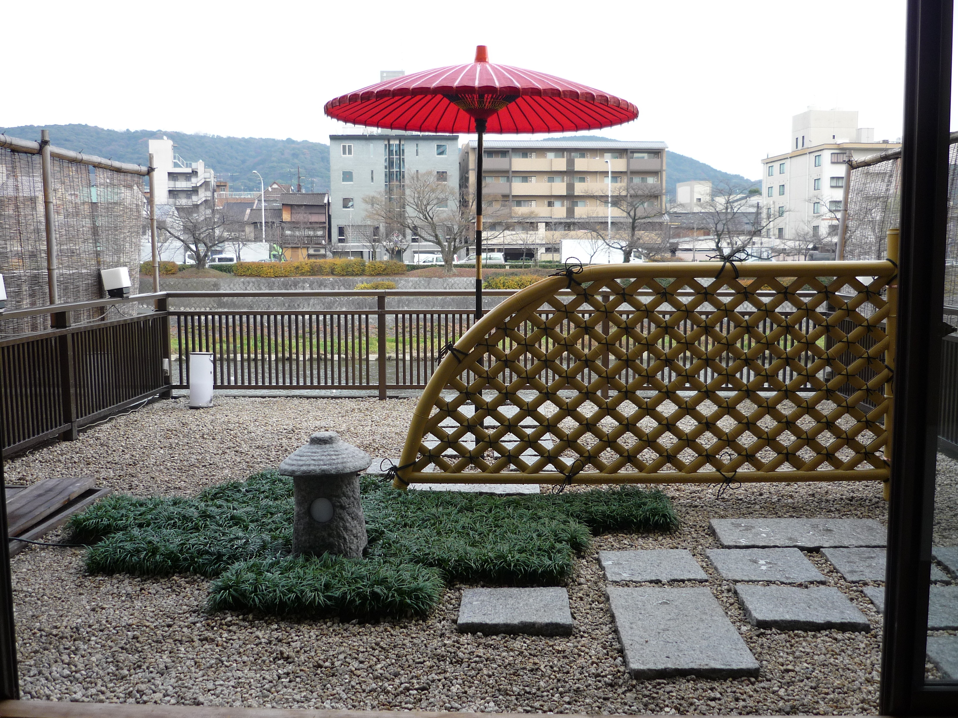 写真の背景にちらっと見えるのは鴨川 この風景は5月に川床がオ-プンすると