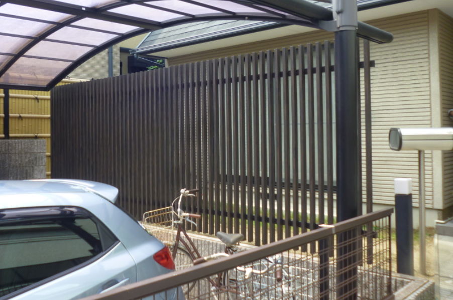 既存のカイブキを撤去したので 通風もとれて適度な目隠しがとれる千本格子を設置