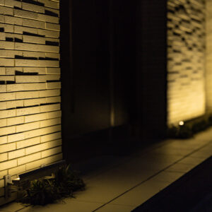 以前は門柱の上に置くタイプやブラケットタイプのものが多く取り扱われていましたが、昨今のエクステリアでは、照明による演出が重要視されており、植栽や壁面を下から照らす演出が多く見られるようになりました。照明の配置や照らし方を変えるだけで、エクステリア全体のデザイン性をアップさせると言っても過言ではありません。