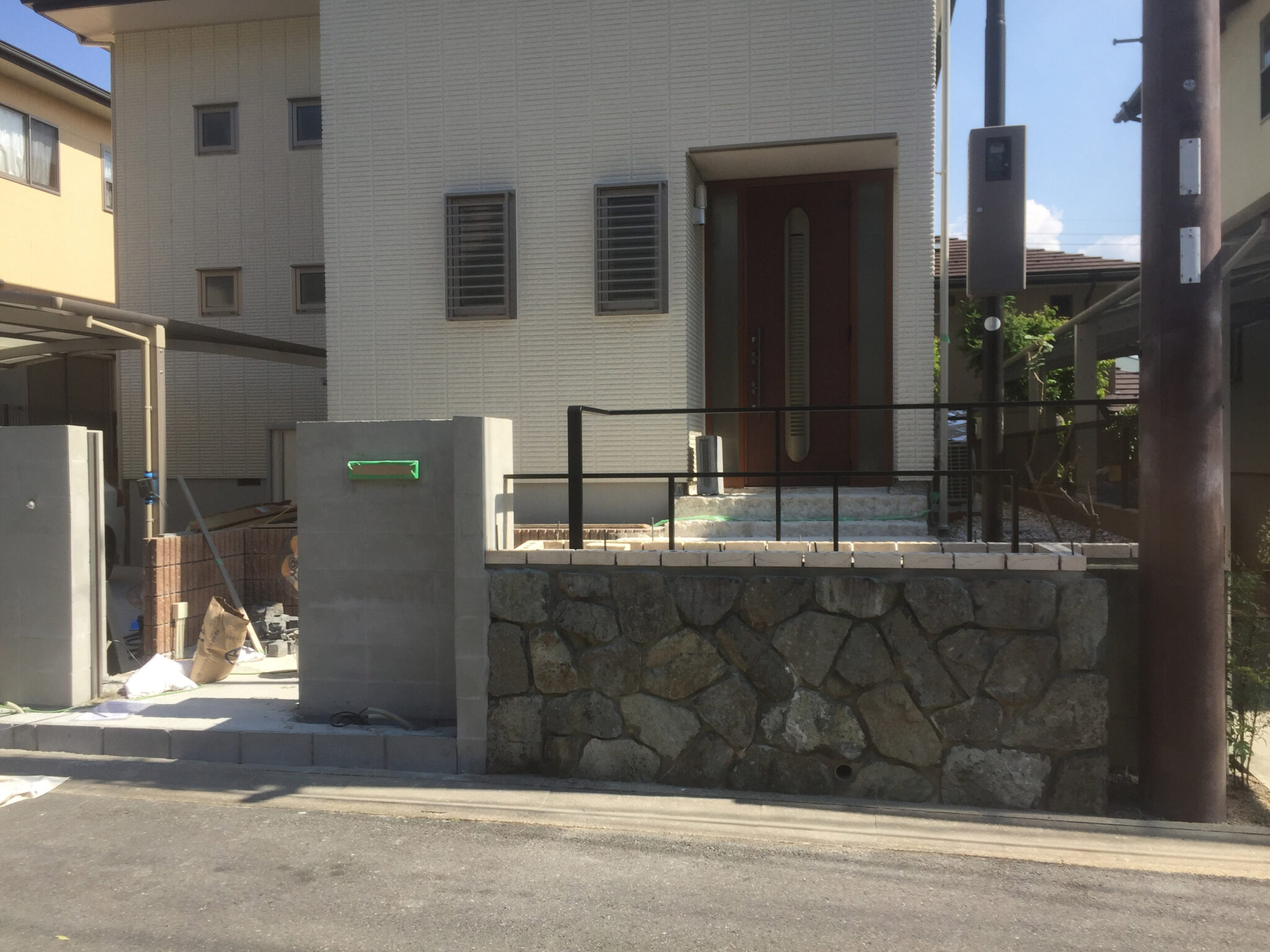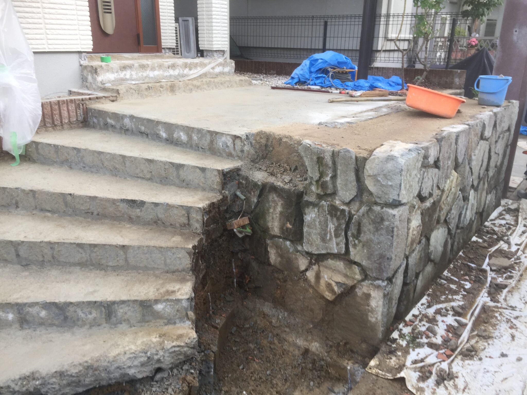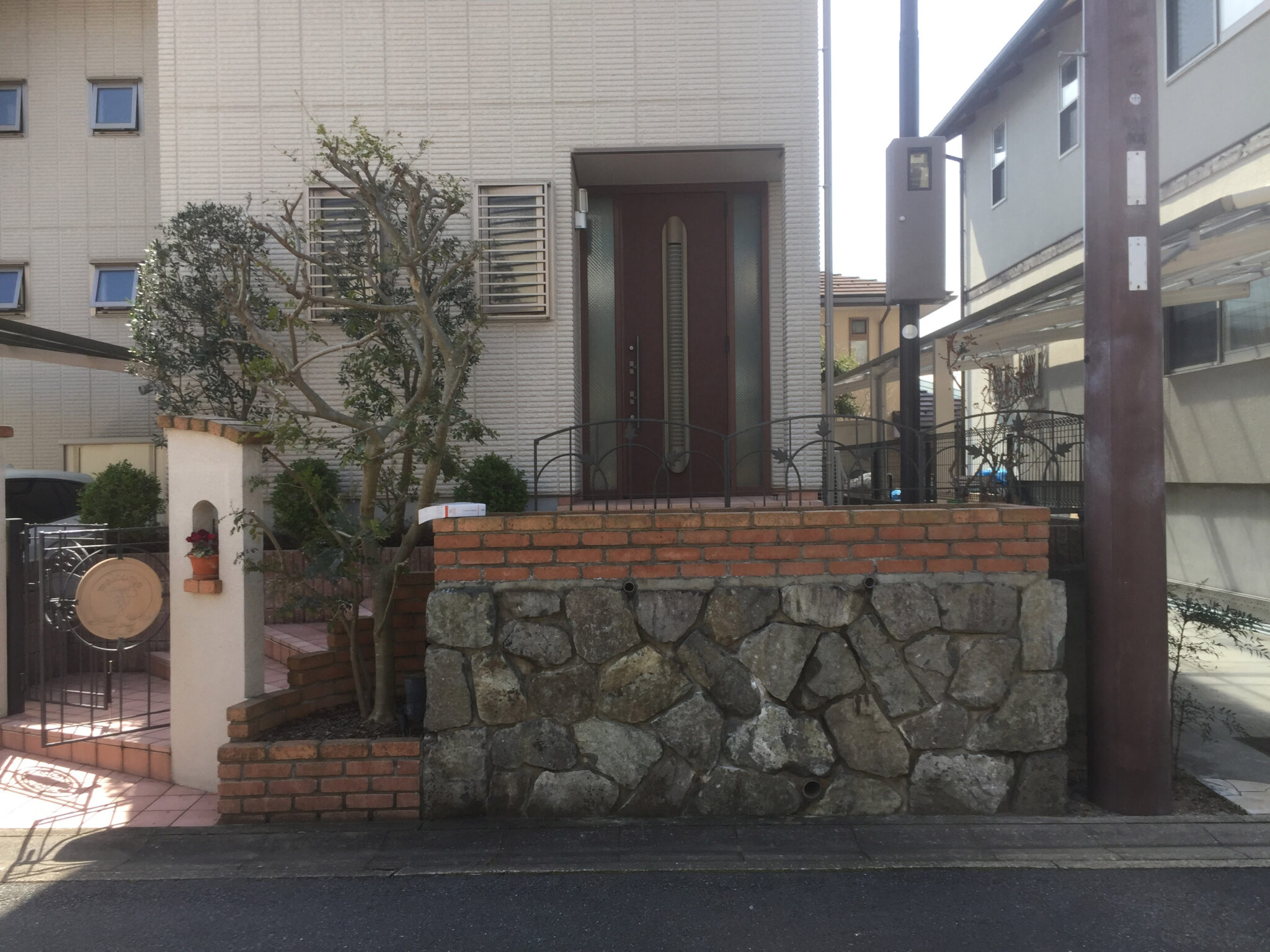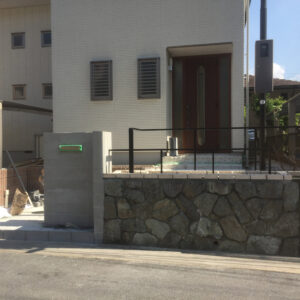 既存石積を残し、門扉、フェンス、レンガ、植木は全て撤去。