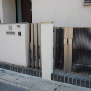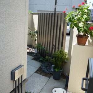 2世帯住宅のため双方の意見を集約させながらそれぞれにご納得いただける形にするのは大変な部分もありましたが、スタイリッシュなクローズ外構を完成することができました。