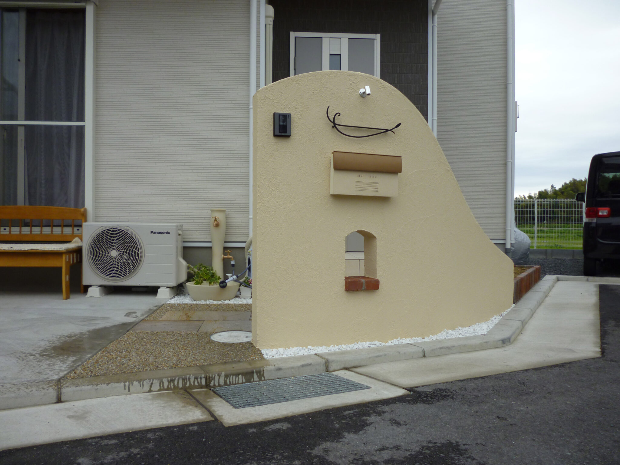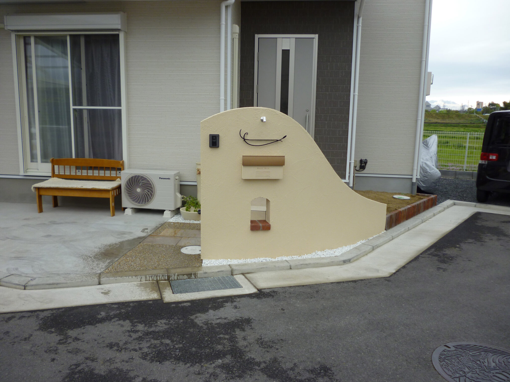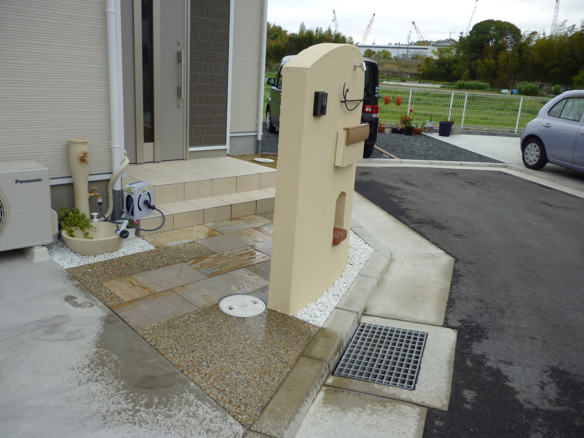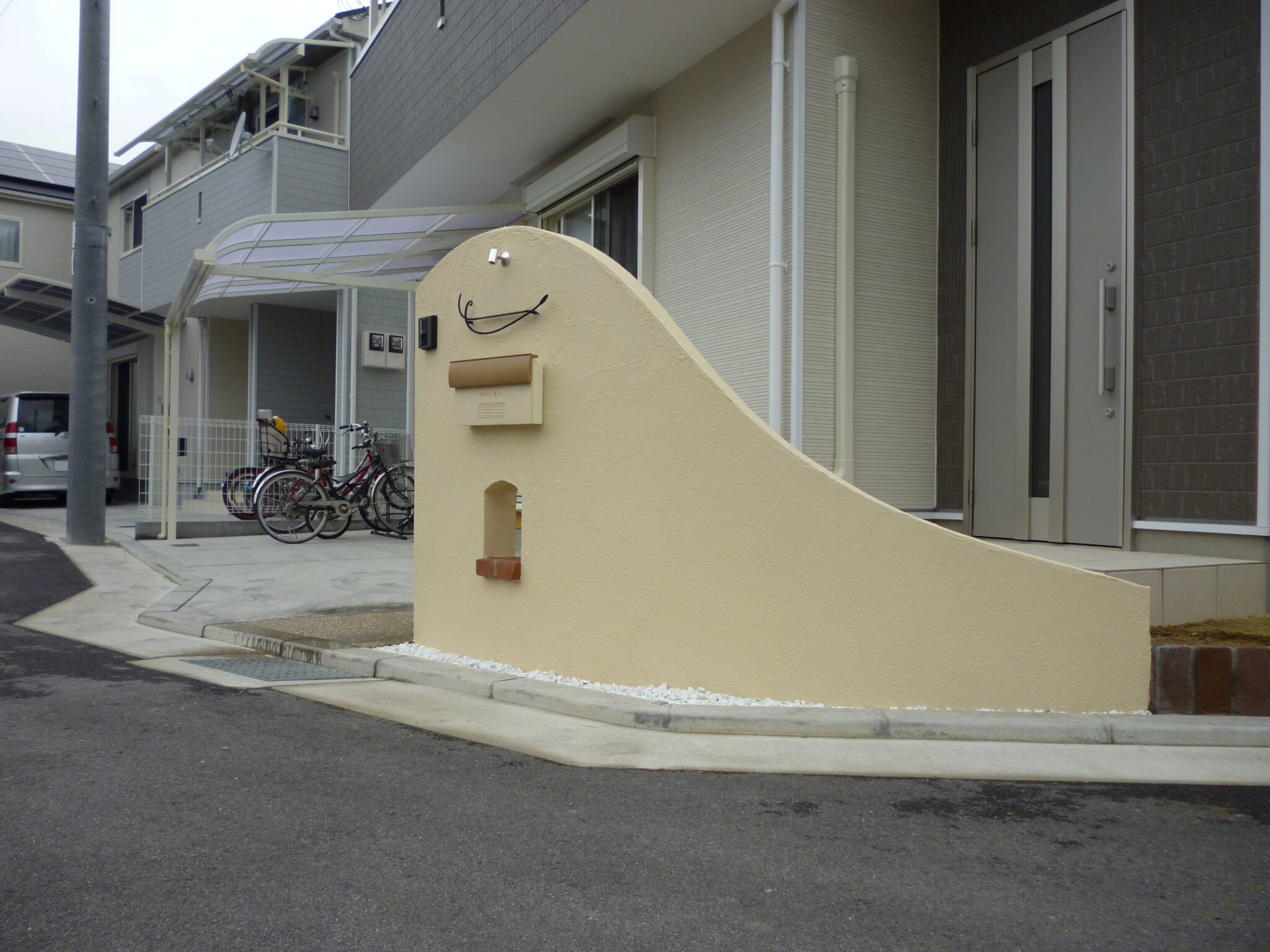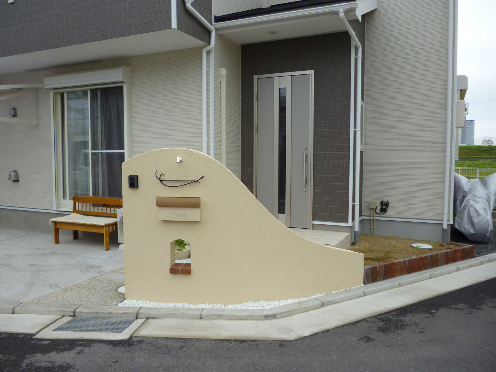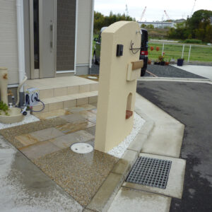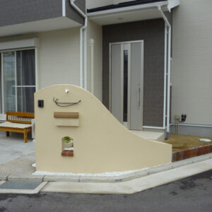 【枚方市】新築外構|やさしくて暖かみのあるアール型造作門柱