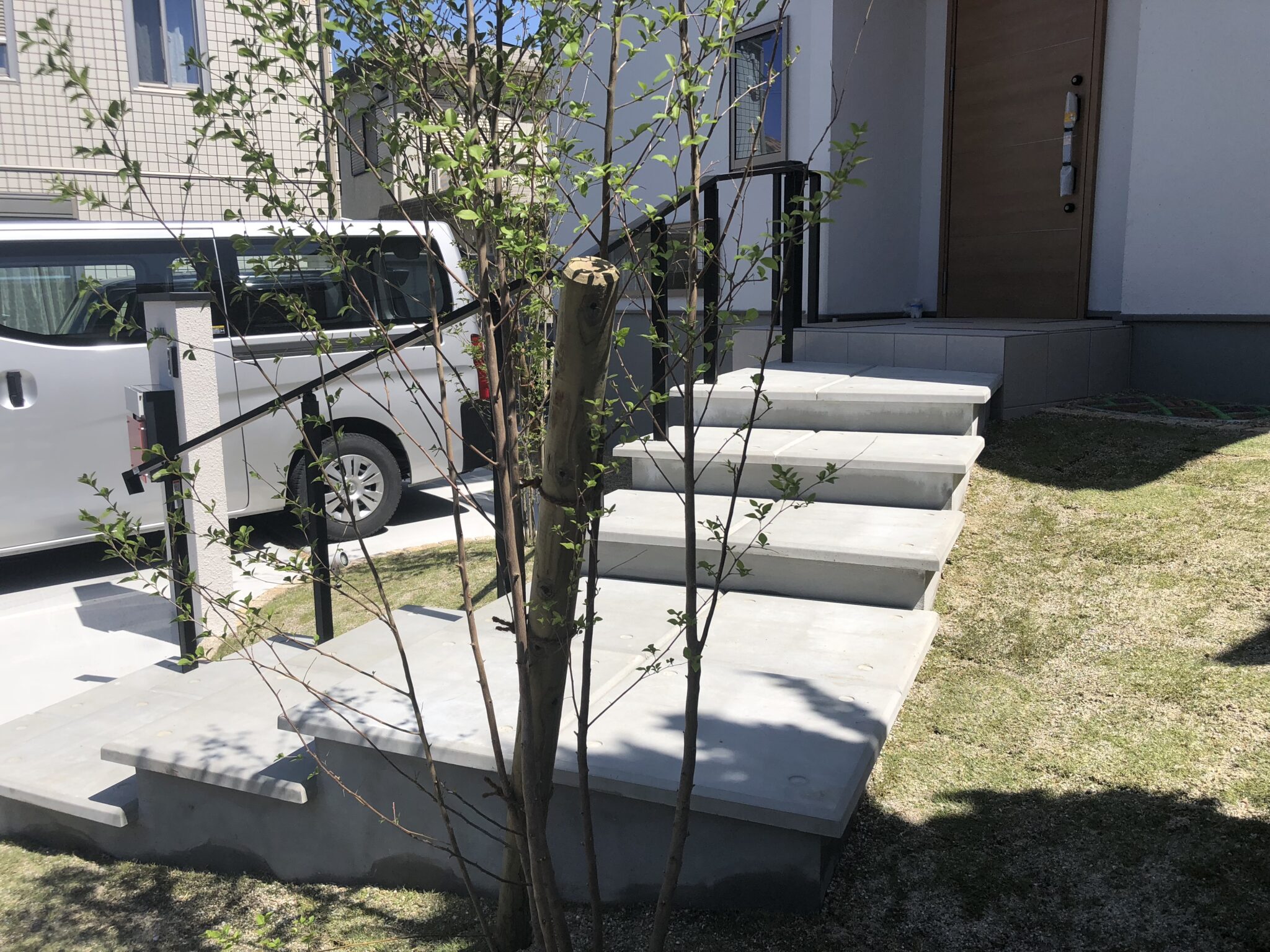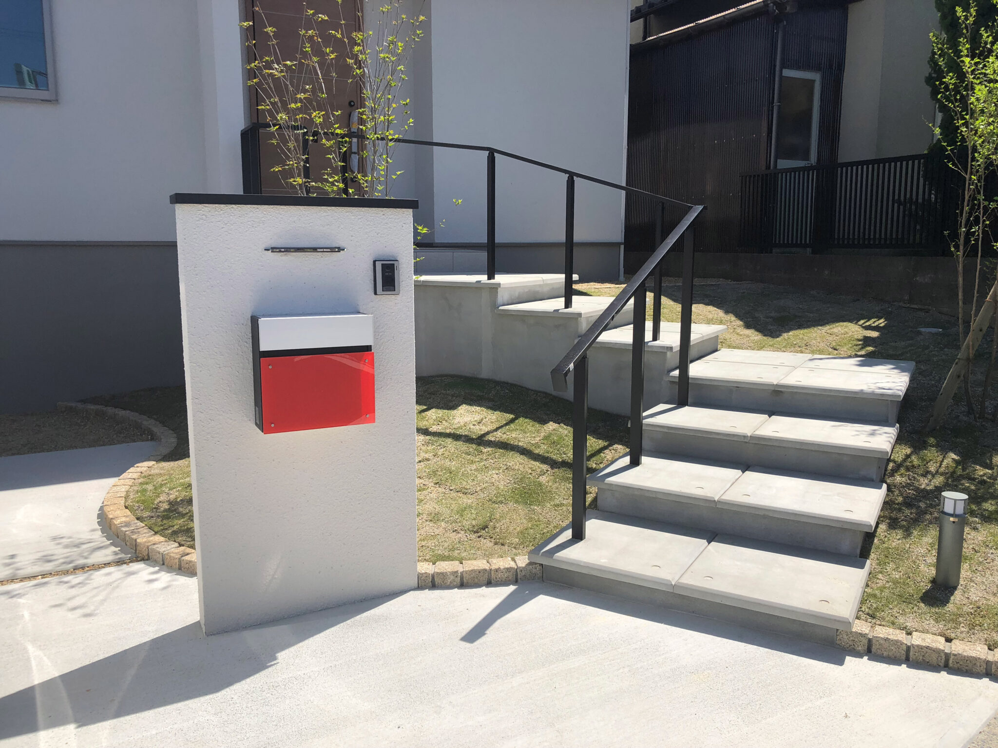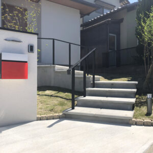 手すりと笠木のブラックが全体を引き締めています。