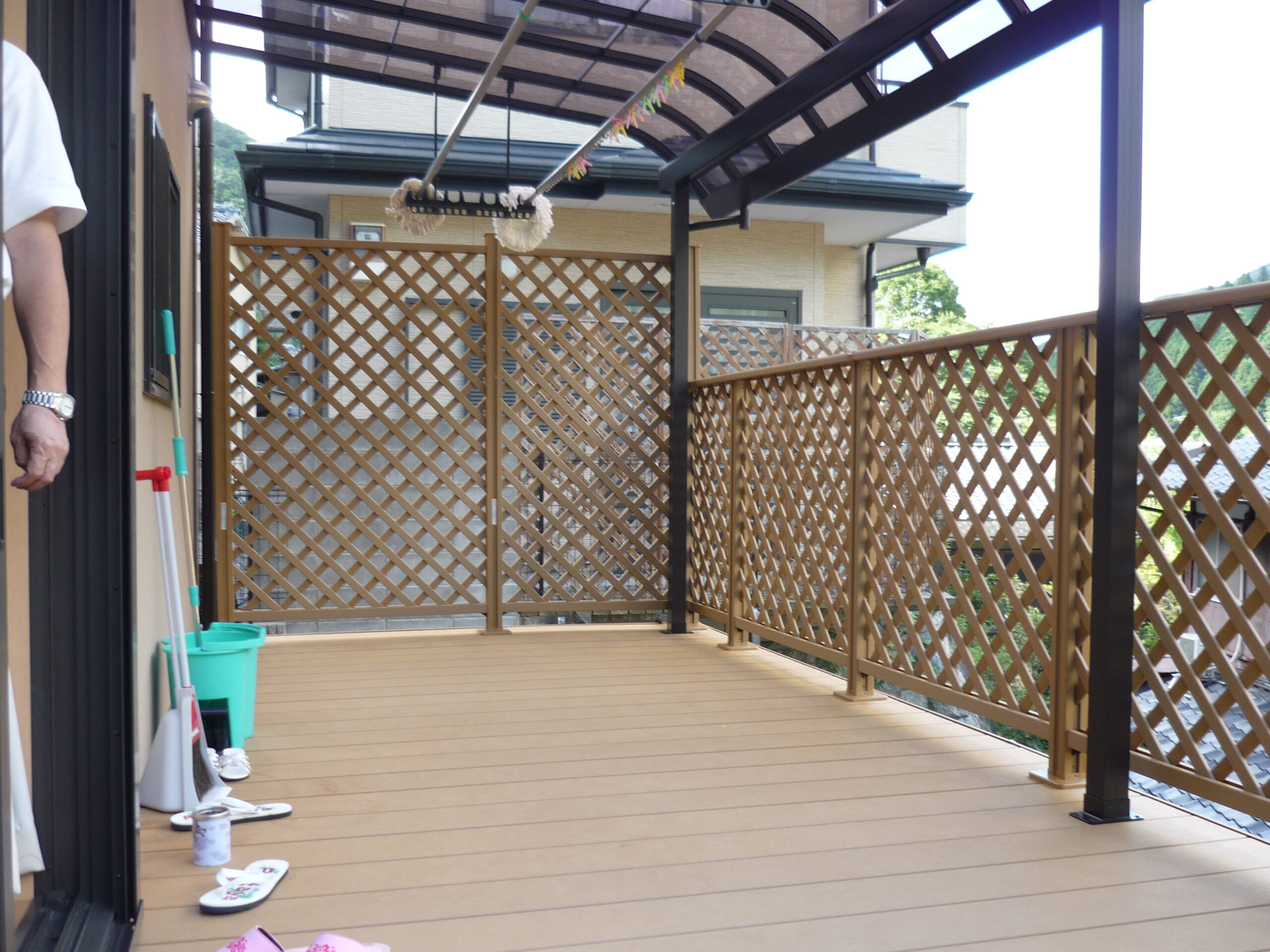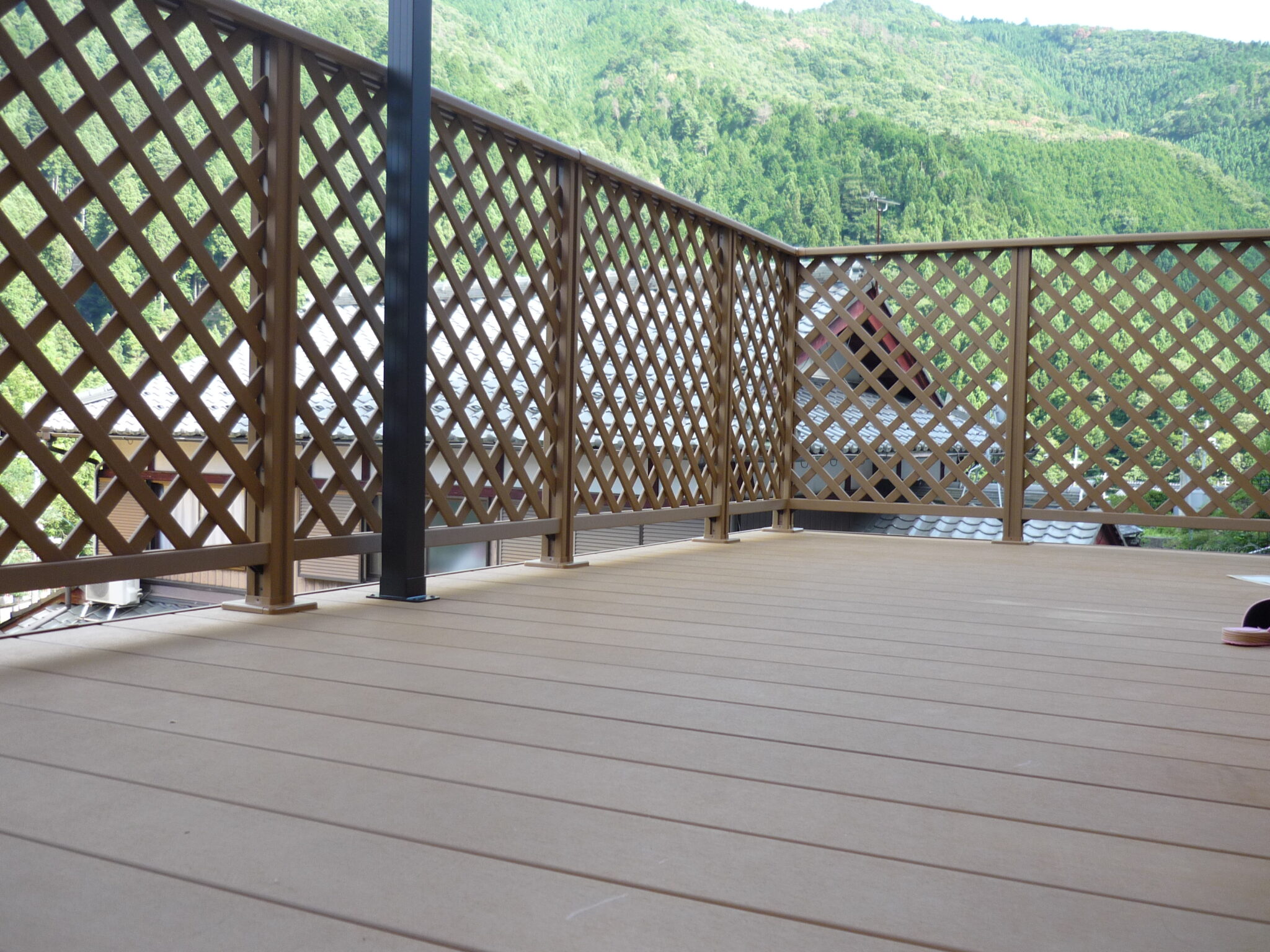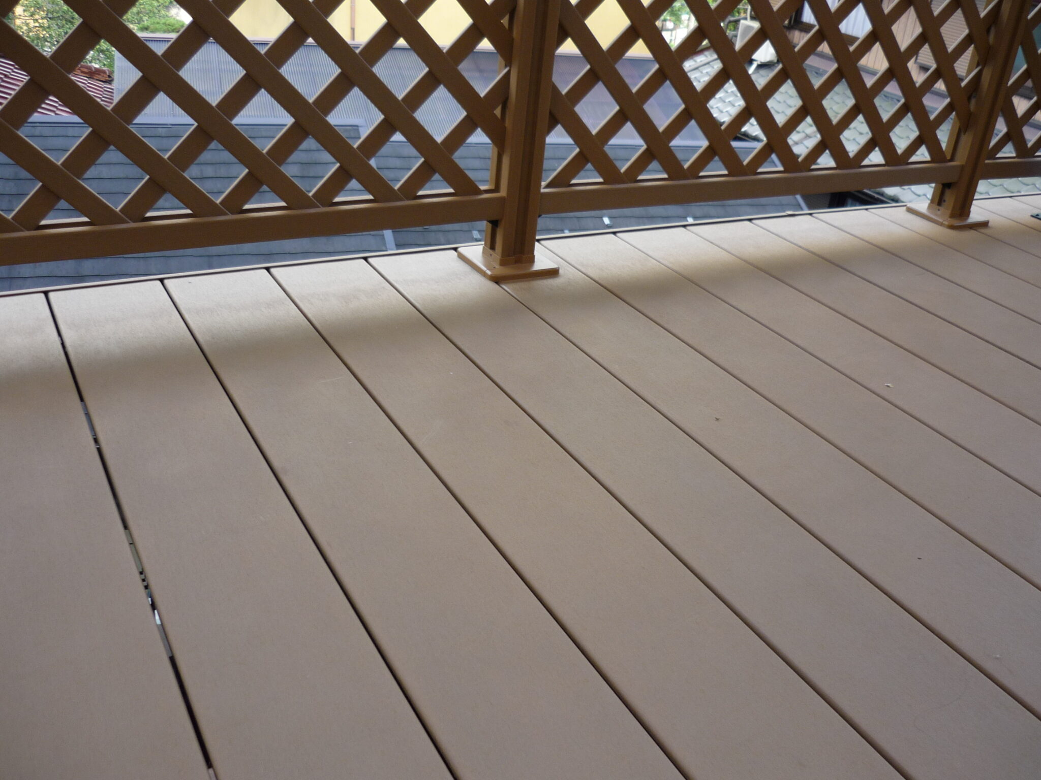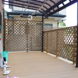 転落防止と目隠し機能を兼ね備えたデザインフェンスを取り付け広々としたプライベート空間となりました。